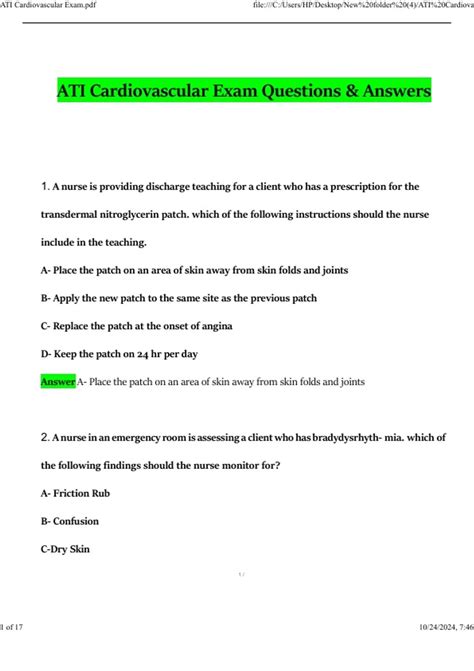 Read Ati Testing Cardiovascular Answers Epub By Click Button. Ati Testing Cardiovascular Answers it’s easy to recommend a new book category such as Novel, journal, comic, magazin, ect. You see it and you just know that the designer is also an author and understands the challenges involved with having a good book. You can easy klick for detailing book and you can read it online, even you can download it
